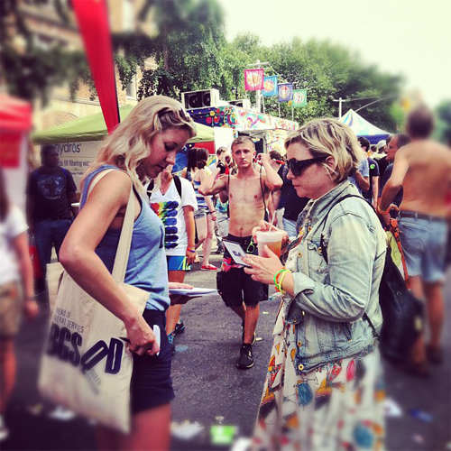 On Sunday, June 24th, co-owners Donnie Jochum and Greg Newton along with sixteen beautiful volunteers canvassed the Pride Fair on Hudson Street to promote awareness of the Bureau and to solicit responses to our online survey. We spoke with lots of people, handed out cards and tote bags, collected e-mail addresses, and had a damn good time! We received over 200 responses to the survey and we collected over 300 e-mail addresses! Thanks to all the survey respondents!