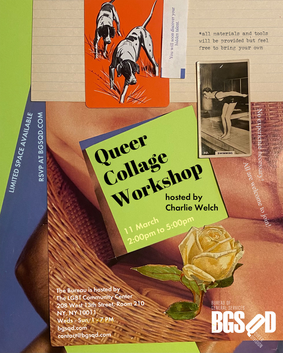 Join us for a queer collage workshop with Charlie Welch in conjunction with Charlie’s current exhibition at the Bureau, It Will End in Tears.