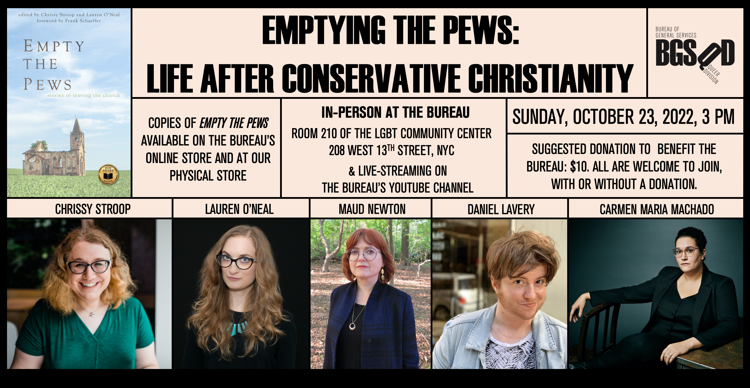 Copies of Empty the Pews are also available at our physical store and will be available for purchase at the event.