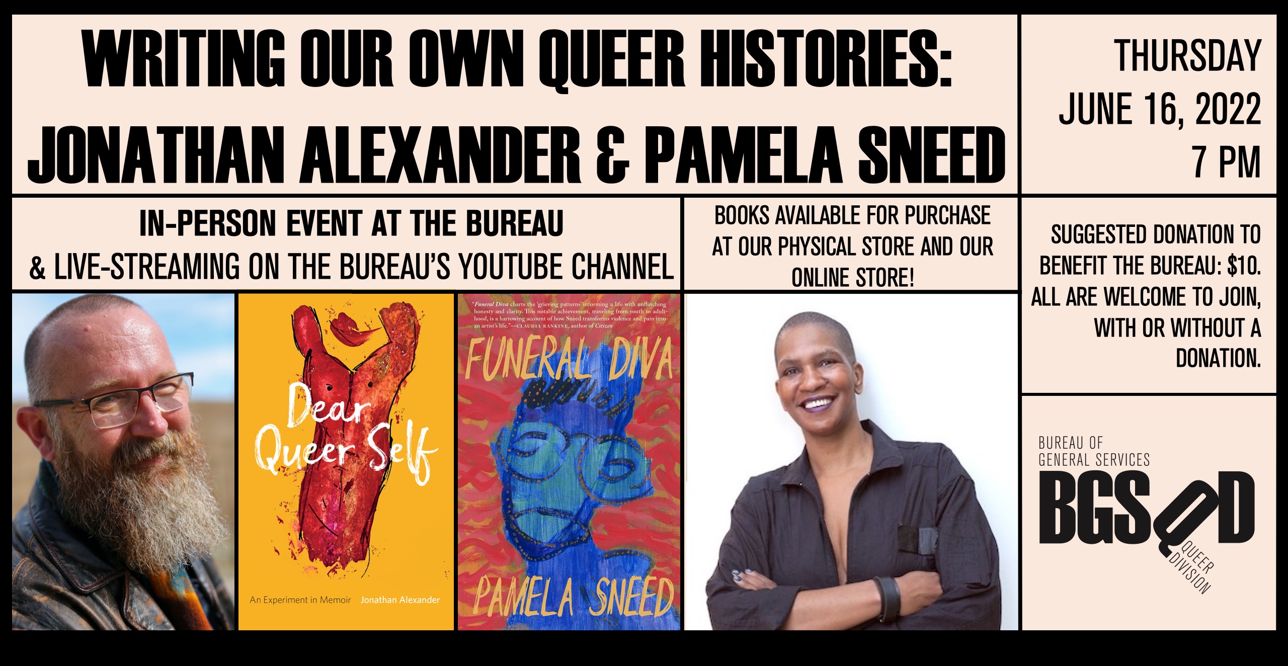 In this reading and conversation, Pamela Sneed and Jonathan Alexander talk about their recent writing as well as what it’s like to work with memory in writing about queer lives. From grappling with the legacies of AIDS to connecting with ongoing histories of class and racial trauma, Sneed and Alexander discuss the power of writing queerly about our lives, loves, communities, histories, and futures.